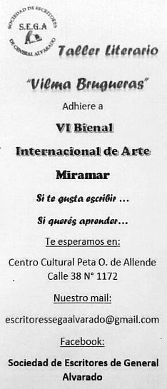 Estuvimos con la señora Marité Svast, a quien entregamos nuestro mensaje en poesía (que compartimos) junto con las felicitaciones por la VI Bienal en una década de arte en Miramar.