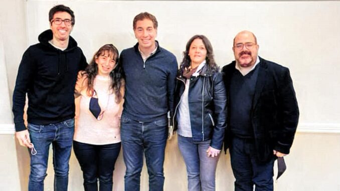 El candidato a primer concejal por el PRO Joaquin Sanchez Charro, acompañado de Marita Ardouin, Julian Pagliardini y Mariela Roldan estuvieron en la ciudad de Mar del Plata, oportunidad en la que se fotografiaron con el primer candidato a Diputado Nacional Diego Santili.