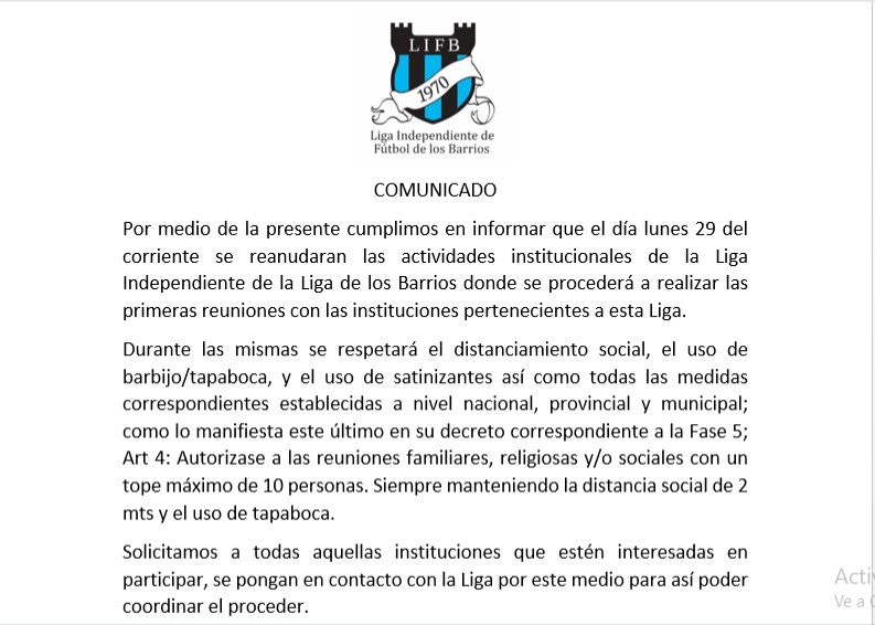 El pasado lunes la liga independiente de los barrios se reunió por primera vez en esta cuarentena para comenzar a definir el futuro de la institución.