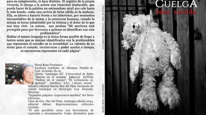 María Rosa Fernández (Marsol), escritora urbana miramarense, presentó el libro “La Cabeza me Cuelga” en el que trata uno de los temas más tabúes de la sociedad actual: “el suicidio”. El registro de la propia vivencia le otorga a la autora una veracidad implacable sobre tópicos delicados.
