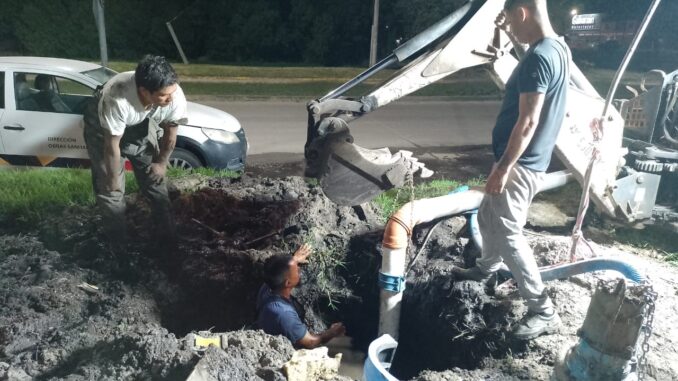 Durante la madrugada de hoy, miércoles 29, la Dirección de Obras Sanitarias del Municipio de General Alvarado estuvo trabajando, a pesar de las malas condiciones climáticas, en la reparación de dos cañerías principales de 300 mms del servicio de agua corriente de la ciudad de Miramar, focalizadas en la Av. 40 entre la Av. 9 y la calle 11.