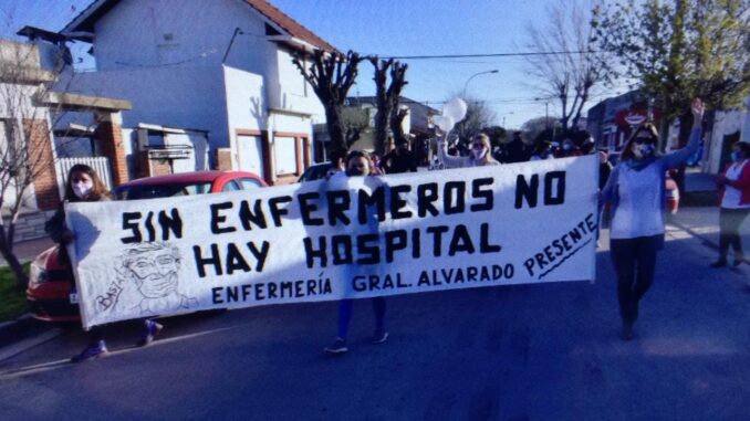 Personal de enfermería del sector público y privado, acompañado de empleados del área de Salud en general, encabezaron una manifestación pacífica en el sector de 21 y 24. Con el lema “Sin Enfermeros no hay Hospital”, no sólo reclamaron mejores condiciones laborales, sino también el mejoramiento en la situación salarial.