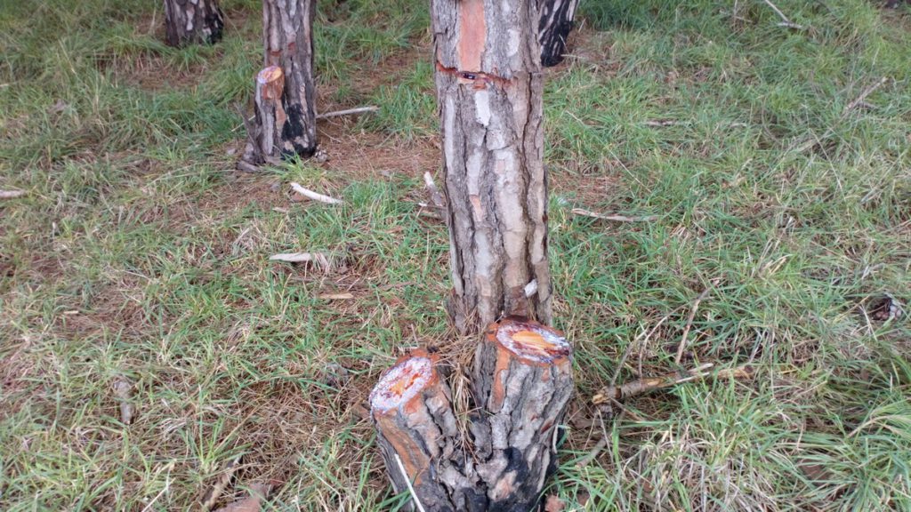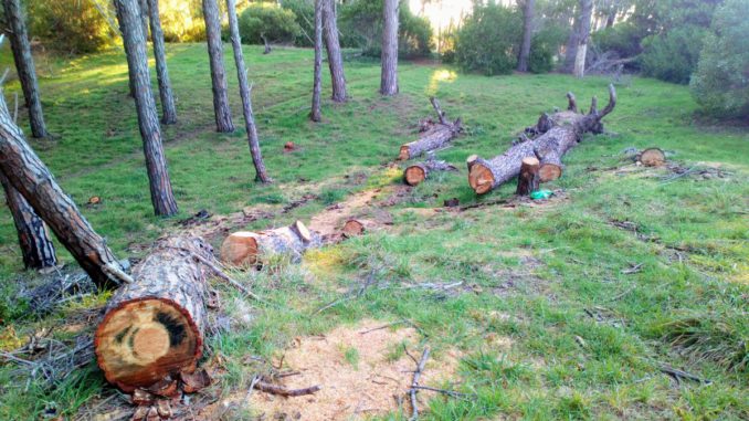 Que pinos y eucaliptos arrancados o hachados forman parte de un panorama desolador, agravado aún más ya que al entrar en contacto con algunos troncos puede comprobarse que todavía desprenden esa resina que evidencia su estado joven y verde.
