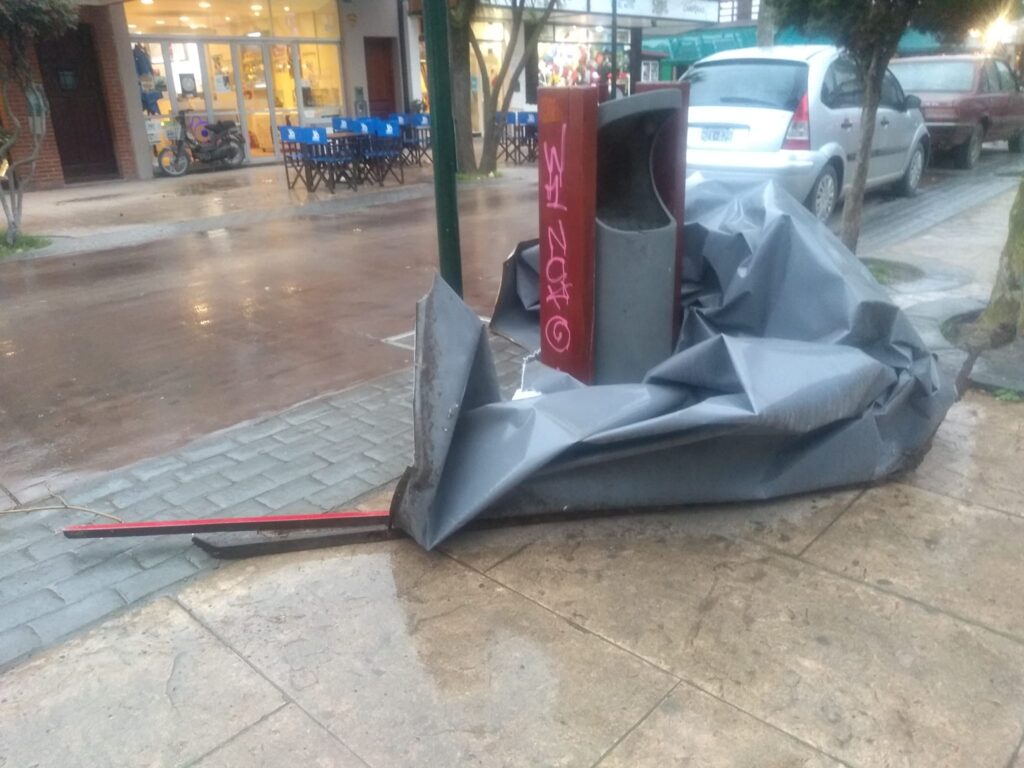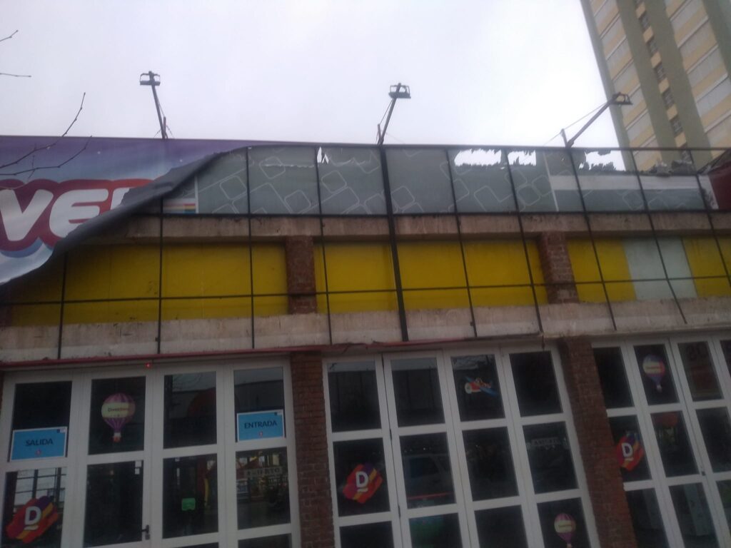 Como lo había anunciado el pronóstico del Servicio Meteorológico Nacional, fuertes ráfagas de viento irrumpieron en la tarde del jueves y en poco tiempo generaron los primeros daños: se voló el techo de una casa y también cayeron postes de luz y carteles.