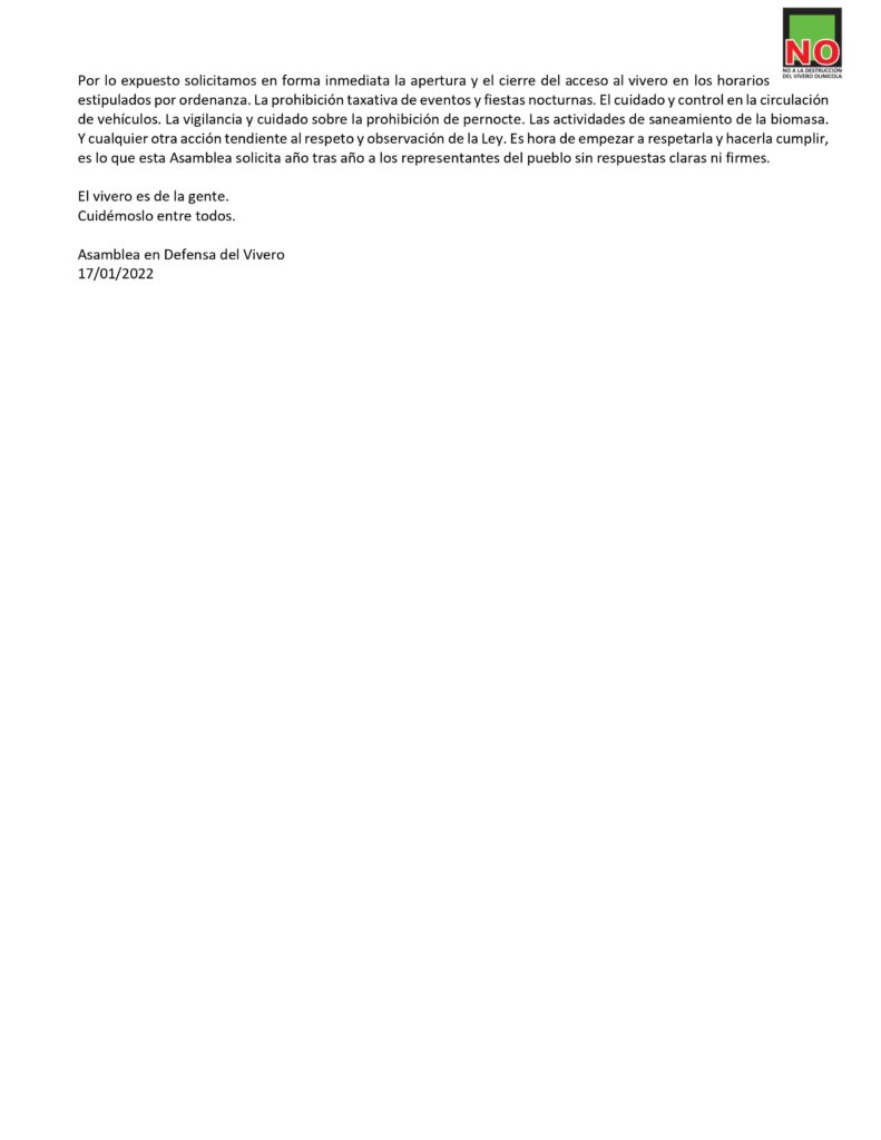 Tras los graves incendios La Asamblea en Defensa del Vivero solicita que se cumplan las ordenanzas vigentes 22 enero, 2022 Destacada Piden que regulen el acceso, permanencia y manejo de ese espacio público en forma inmediata, demodo que nunca jamás vuelvan a ocurrir.
