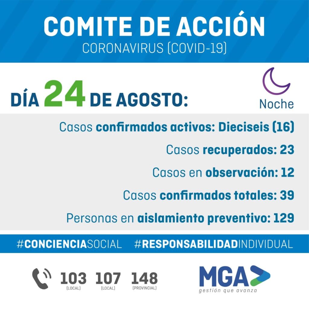 La gran noticia del último parte COVID-19 es que se registraron tres nuevos recuperados y hay 16 casos confirmados activos de coronavirus. Se sumó un nuevo caso en Otamendi, se trata de una mujer, personal de salud, entre 27 a 32 años de edad y está en aislamiento domiciliario y con monitoreo por agentes de salud.