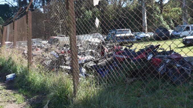 Es que hace años se han ido apilando cientos de motos, decenas de autos y todo vehículo que se encuentre en la calle o secuestren los policías o inspectores de tránsito terminan arrojados en ese galpón que parece abandonado, atento las condiciones en que se encuentra.