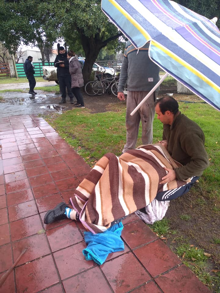 «Esto sucede en Miramar gente, por falta de ambulancias, mi vecina de 80 y pico de años tirada bajo del agua, por una caída,quebradura cadera y fémur, la ambulancia tardo 40 minutos , si señores 40 minutos, como lo ven en el video los vecinos tratando de hacer algo, con sombrilla para que no se moje !! Un abandono de persona por parte del hospital, o de nos que nos gobierna!! Por no tener las cosas en orden, una sola ambulancia para todo? ,señor intendente somos cuarenta mil personas en el distrito!!! las demás todas rotas, dicho por gente que trabaja en el mismo una verguenzaaaaa!! Gente Piensen cuando voten, ahora se aproximan elecciones, muchachos!!! Esto no puede pasar en nuestra ciudad!! No esperemos que nos toque, reaccionemos!! Antes»