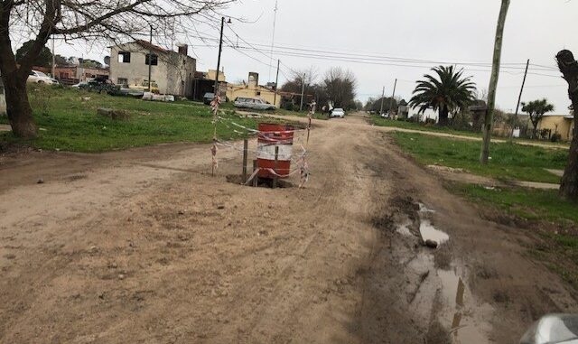 Se ha desmoronado un sector de la calle, lo que hace muy peligrosa la circulación. Para advertir se ha colocado un tambor que impide que sea llevado por delante por los transeúntes y automovilistas.