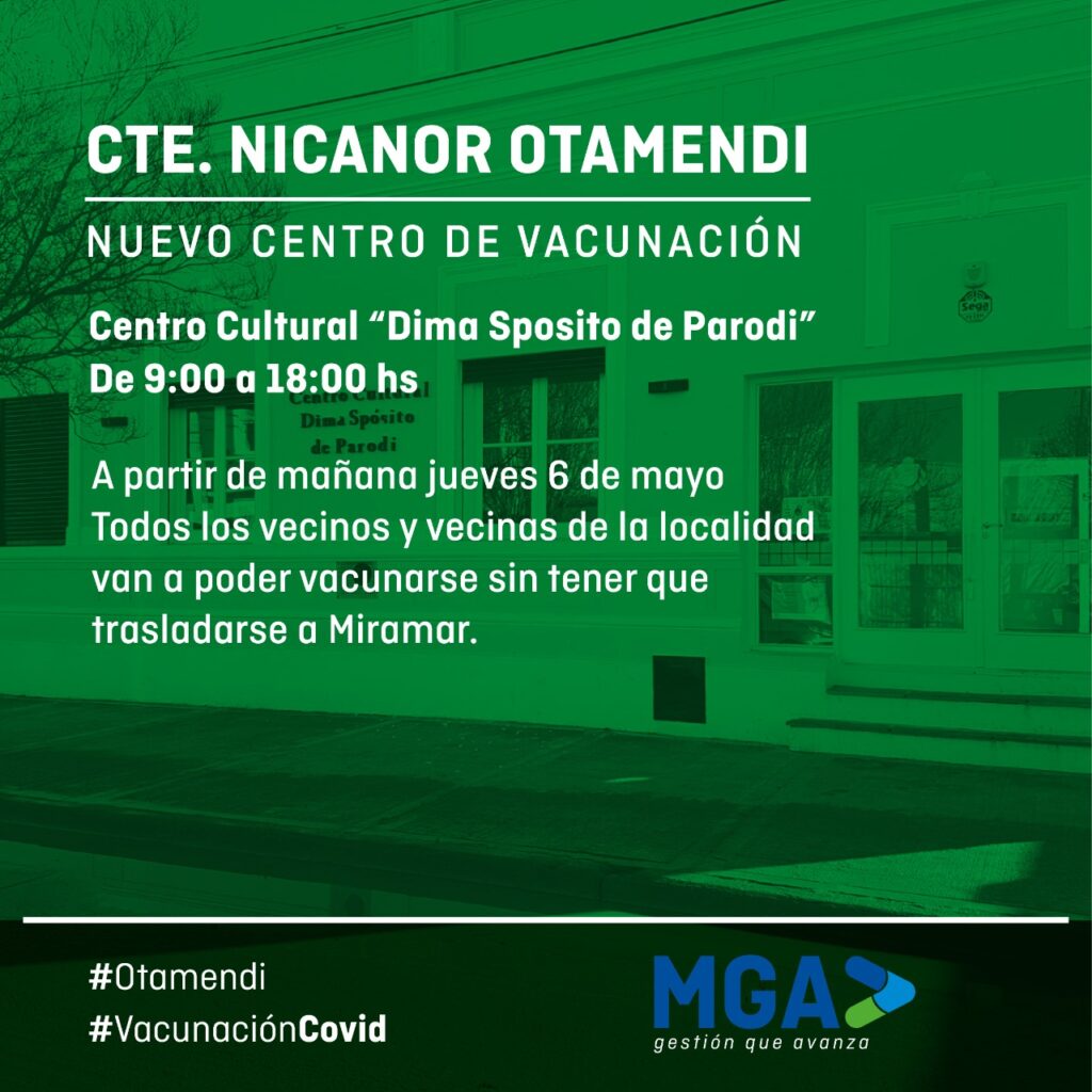 Aquellas vecinas y vecinos de Cte. Nicanor Otamendi que fueran notificados por el Ministerio de Salud PBA para vacunarse en Miramar, serán inoculados en su ciudad mañana sin necesidad de trasladarse, acercándose con el comprobante al lugar.