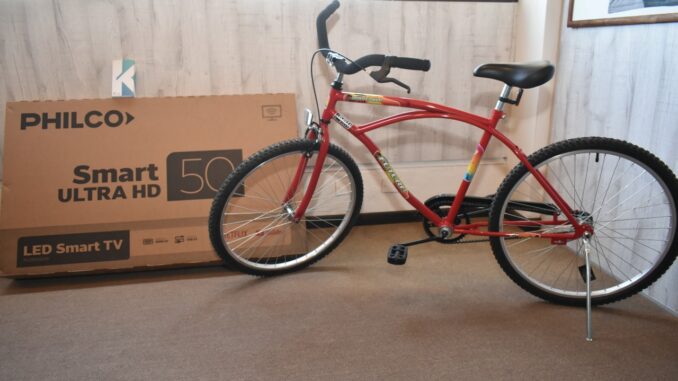 Con la supervisión de la escribana María José Huarte, se sorteó entre los números de partidas municipales cuyas obligaciones fiscales con la comuna estuvieran al día y estar cuitificado (listado publicado en la web www.mga.gov.ar) 1 LED Smart Tv de 50 pulgadas, 1 Smartphone y 1 bicicleta playera.