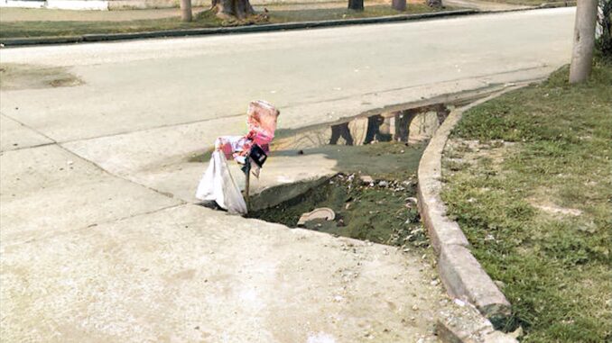 La calle 32 y 25 exhibe un pozo profundo, una grieta y rotura del asfalto que es una verdadera trampa para los motociclistas y biciclistas que pueden caerse y sufrir graves lesiones.